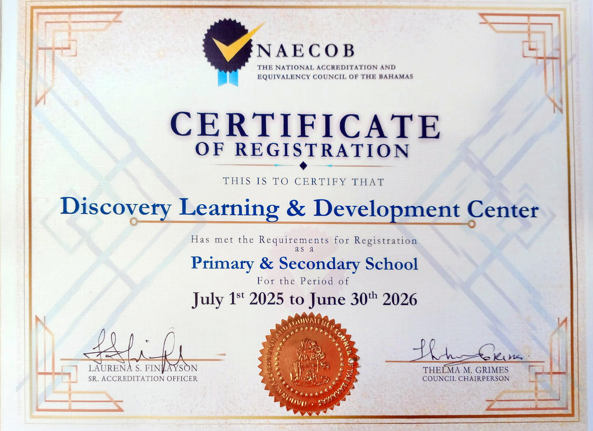 Our partner school Discovery Learning Development Center can be found listed on The National Accreditation and Equivalency Council website, which is the accreditation body overseeing all institutions in the Bahamas. It is an excellent place to look when checking a school’s credentials.